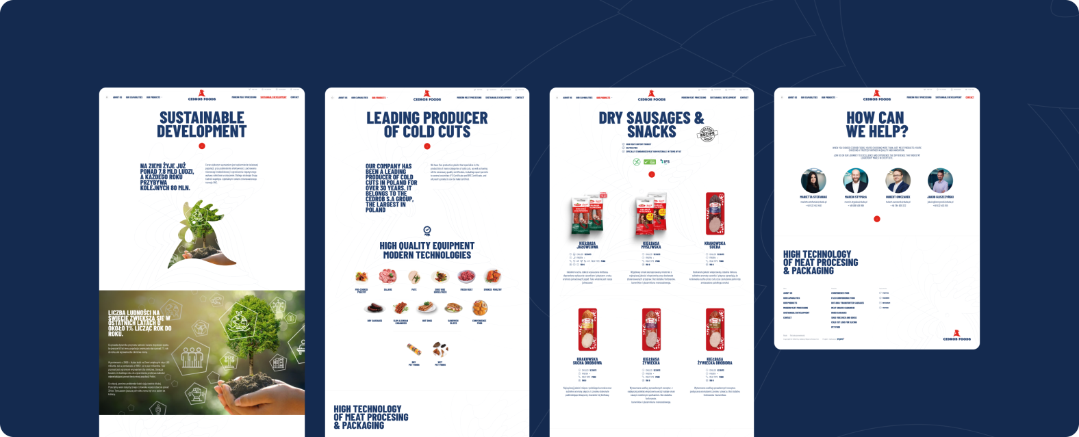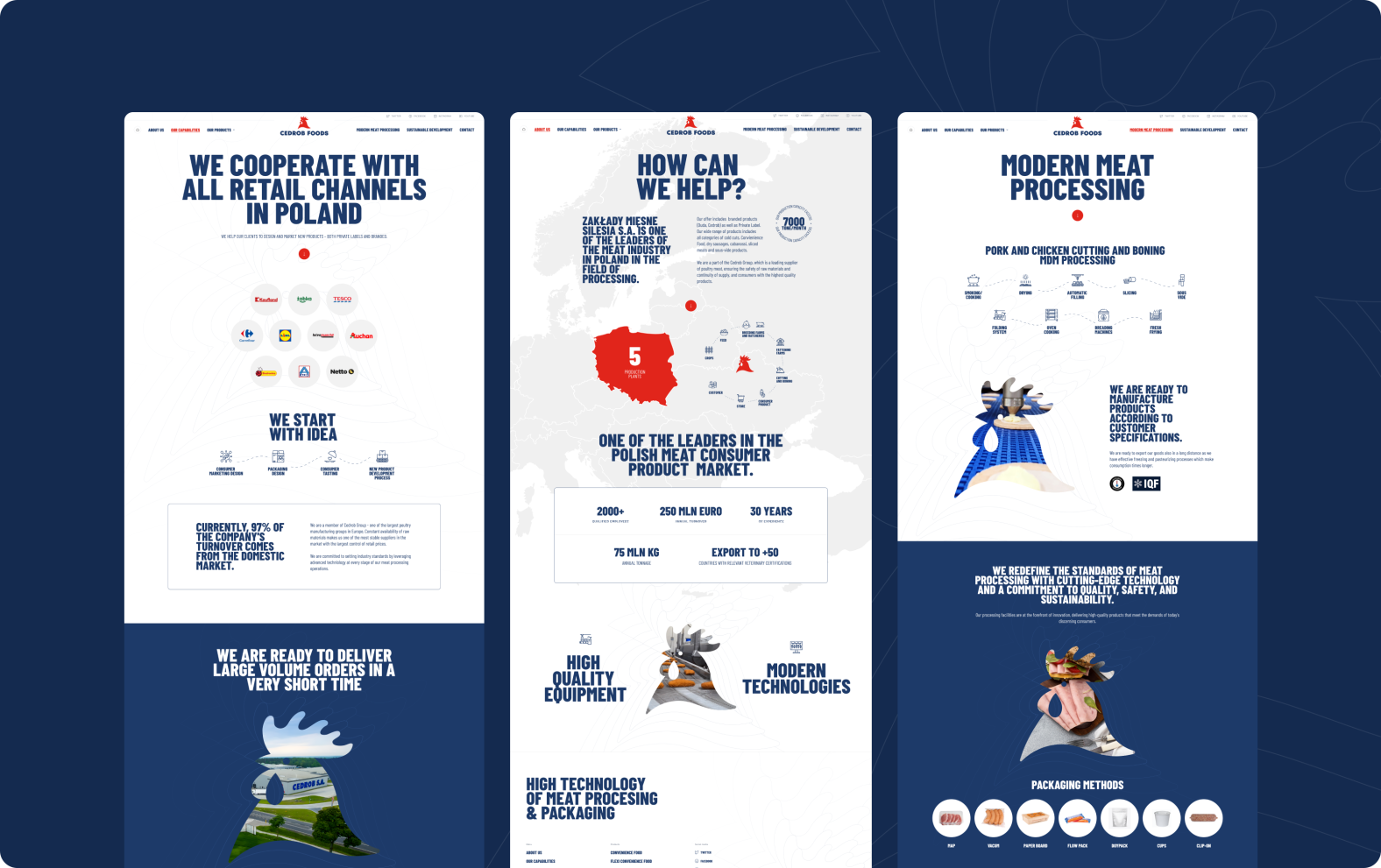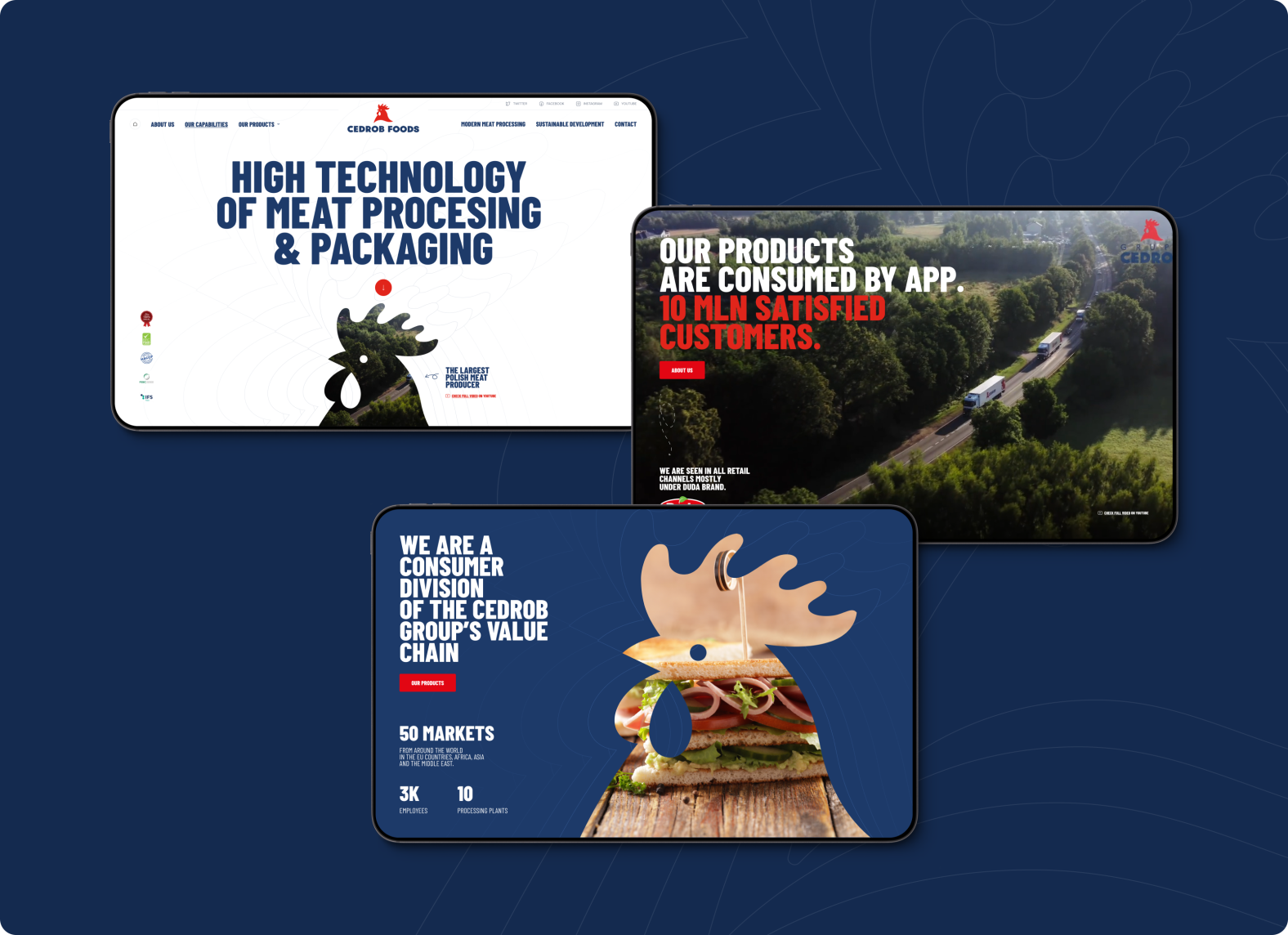 Całość projektu została utrzymana w eleganckim stylu, z dużym naciskiem na przejrzystość i czytelność treści. Dzięki połączeniu atrakcyjnej warstwy wizualnej z nowoczesnymi efektami animacji strona wspiera profesjonalny wizerunek CEDROB FOODS S.A. na rynkach międzynarodowych.