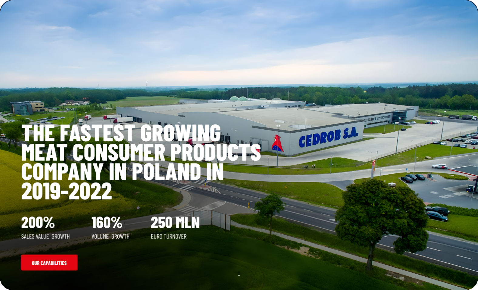Dla spółki CEDROB FOODS S.A. stworzyliśmy stronę internetową w języku angielskim, dedykowaną rynkom zagranicznym. Serwis został zaprojektowany tak, aby w profesjonalny i atrakcyjny sposób prezentować ofertę firmy oraz budować jej wizerunek na arenie międzynarodowej.