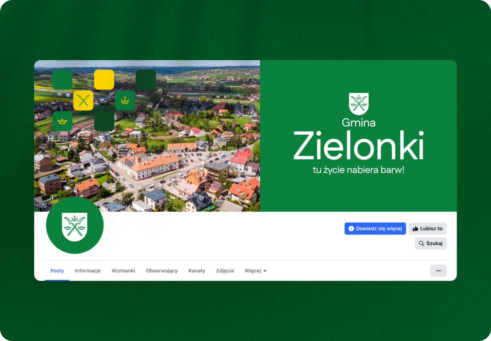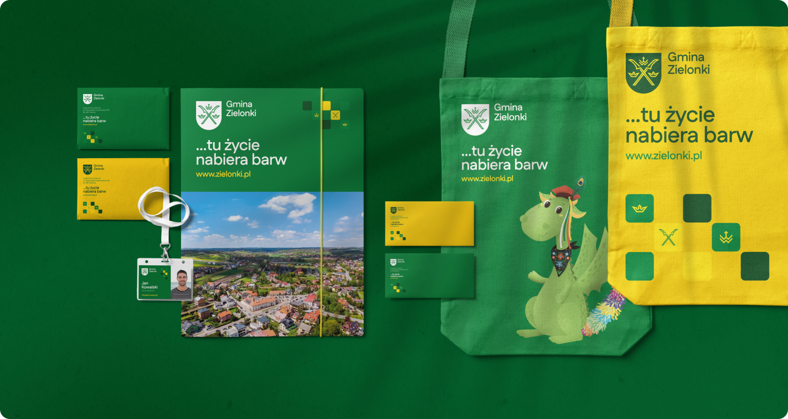 Nowe logo Gminy Zielonki zostało stworzone w oparciu o herb samorządu. Wraz z nim opracowaliśmy szereg elementów identyfikacji wizualnej, które podkreślają spójny i profesjonalny wizerunek jednostki samorządowej.