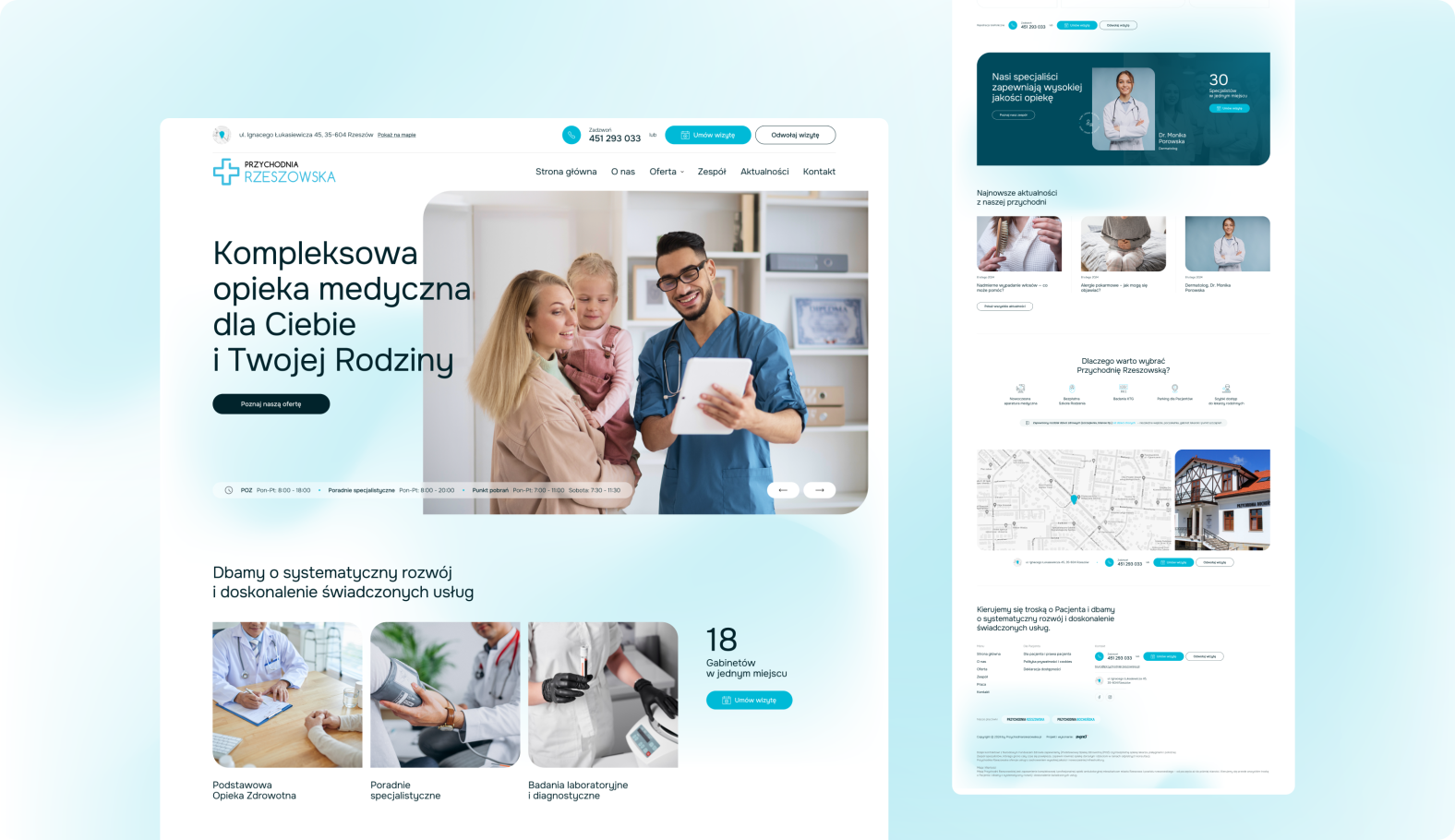 Strona internetowa zawiera informacje o gabinetach, specjalistach i oferowanych usługach. Zadbaliśmy o prostą nawigację i intuicyjną strukturę, dzięki czemu pacjenci mogą łatwo znaleźć potrzebne dane.