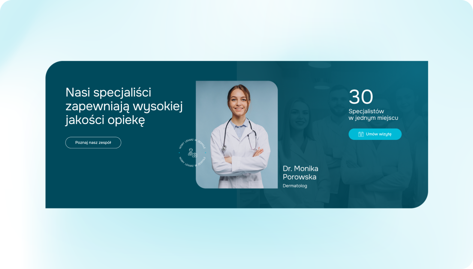Oprócz strony przygotowaliśmy logo oraz elementy identyfikacji wizualnej, które budują profesjonalny i wiarygodny wizerunek placówki. Wszystkie materiały utrzymane są w estetyce odpowiadającej branży medycznej – minimalistycznej, przejrzystej i eleganckiej.