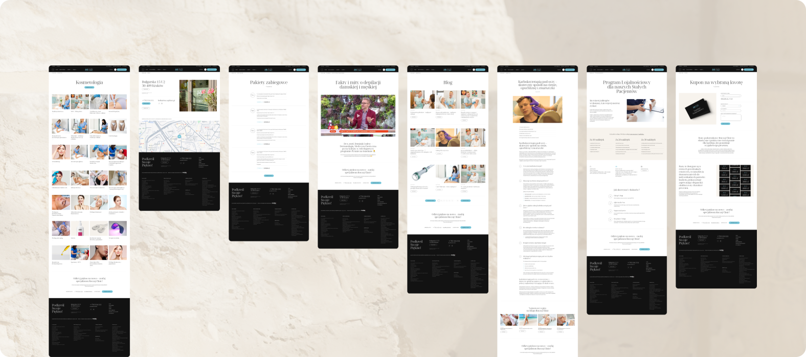 W projekcie położyliśmy nacisk na estetykę i spójność z charakterem kliniki – jasna kolorystyka, delikatne przejścia i elegancka typografia budują wizerunek miejsca nowoczesnego, prestiżowego i przyjaznego pacjentowi.